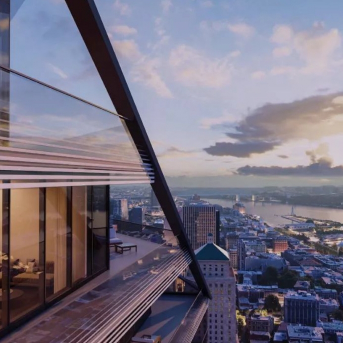 房地產開發商Broccolin集團旗艦建案-維多利亞公寓位於蒙特婁著名的黃金地段金融區,他緊貼著蒙特蒙的老城區,散發出新舊融合的象徵,成為城市中的新指標建築並重新定義天際線,這座大樓整合了許多必須生活機能,可直接到達地鐵站,工作吃喝玩樂全都可以實現,在周遭有公園、辦公室、超市百貨,下樓即是超市零售商店與餐廳;住宅空間預留適當距離保證不受干擾,擁有室內與室外游泳池,綠化空間與屋頂陽台徜徉在城市景觀。